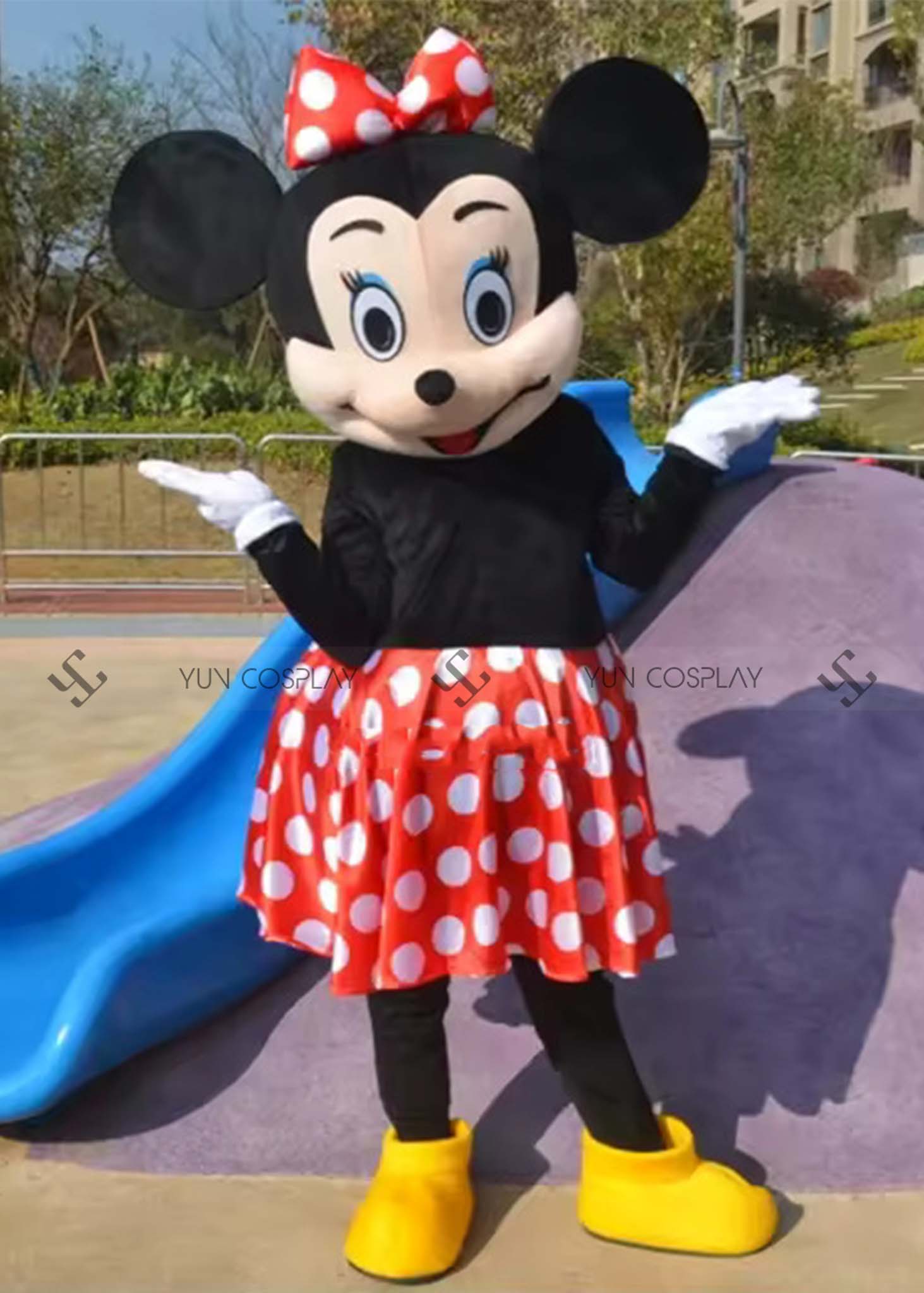 Trang phục Mascot Mickey dễ cử động, thoáng mát, linh hoạt trong từng cử chỉ. Màu sắc tươi mới với các phụ kiện đi kèm tăng thêm mức độ sống động, đáng yêu. Những con mascot đáng yêu này có thể biểu diễn trên sân khấu kịch hay đơn giản để làm nhân vật chào đón các bé đến tham gia chương trình quốc tế thiếu nhi, tết trung thu, tất niên, sinh nhật mà công ty bạn tổ chức.